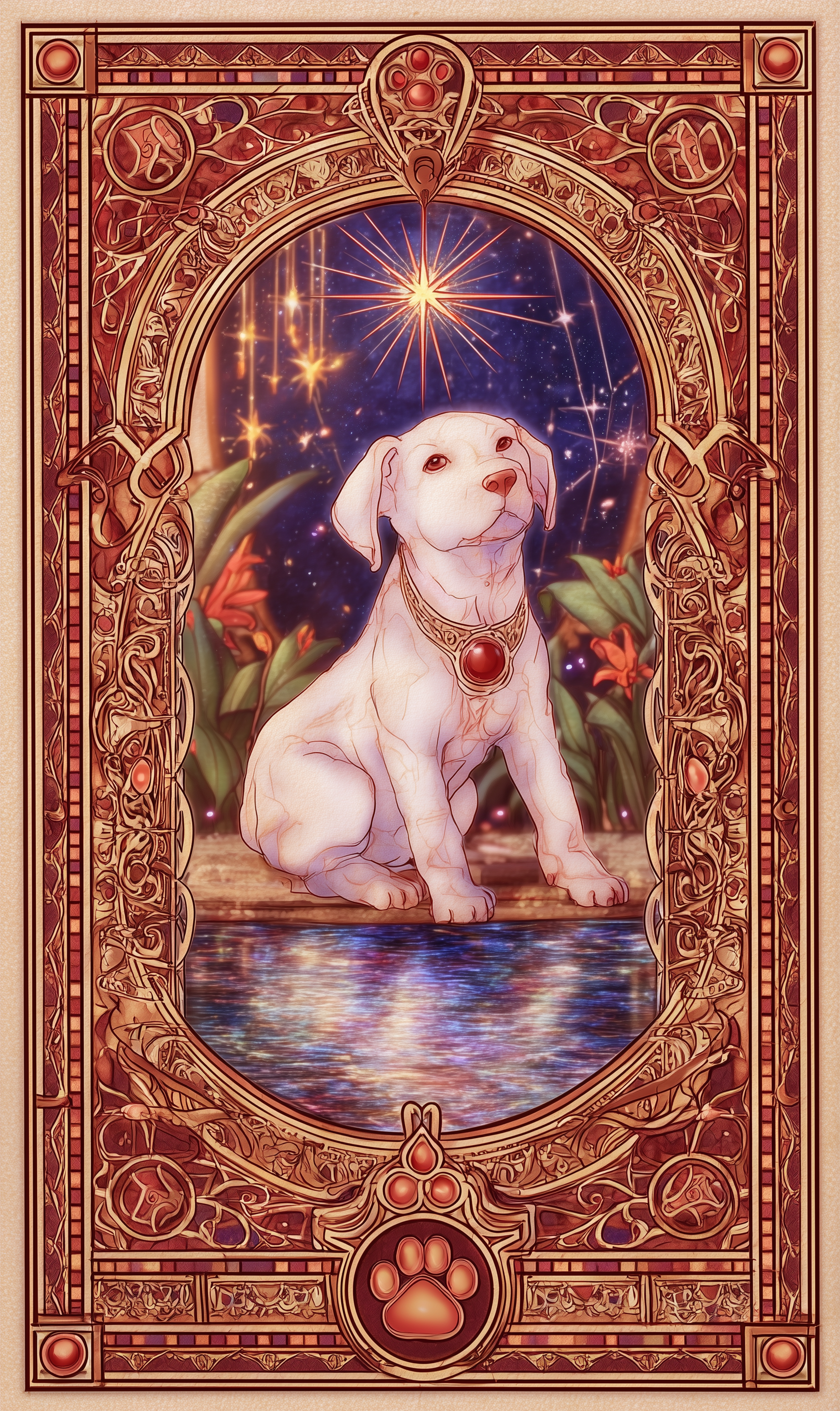 별 카드는 전통 타로에서 순수함, 희망, 영감, 치유, 새로운 가능성을 의미합니다. 별빛 아래 맑은 물가에서 항아리를 기울이는 인물의 모습은, 우주와 자연, 그리고 인간의 조화로운 흐름을 나타냅니다. 이 카드는 삶에 다시 찾아온 빛과 희망을 상징하며, 치유와 회복의 과정을 알려줍니다. 그렇다면 강아지 타로카드에서 별 카드는 어떤 메시지를 줄까요? 오늘은 강아지의 하루 속 희망과 치유의 에너지를 살펴보겠습니다.