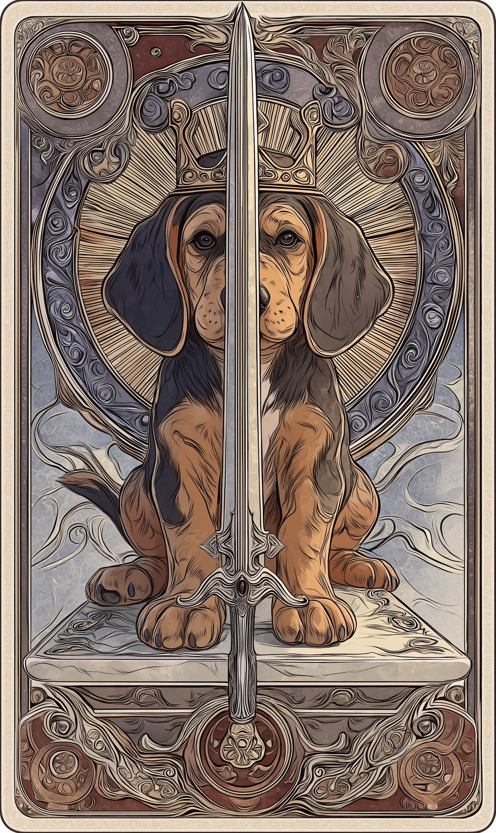 **강아지 타로카드에서 소드의 왕은 “질서와 명확한 기준 속에서 안정감을 찾는 하루”**를 상징합니다.
