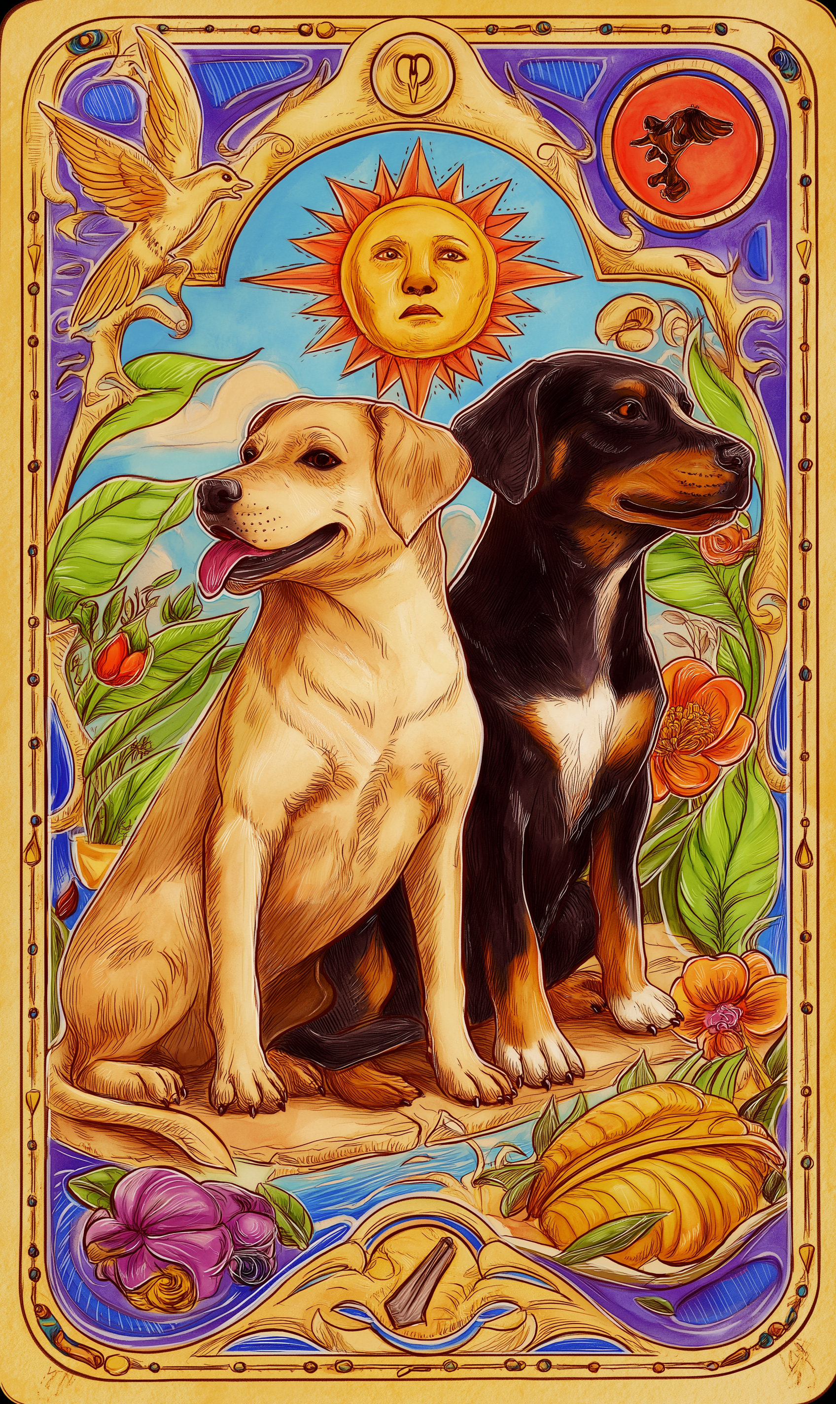 **강아지 타로카드에서 연인은 “사랑과 유대, 함께하는 기쁨”**을 상징합니다.