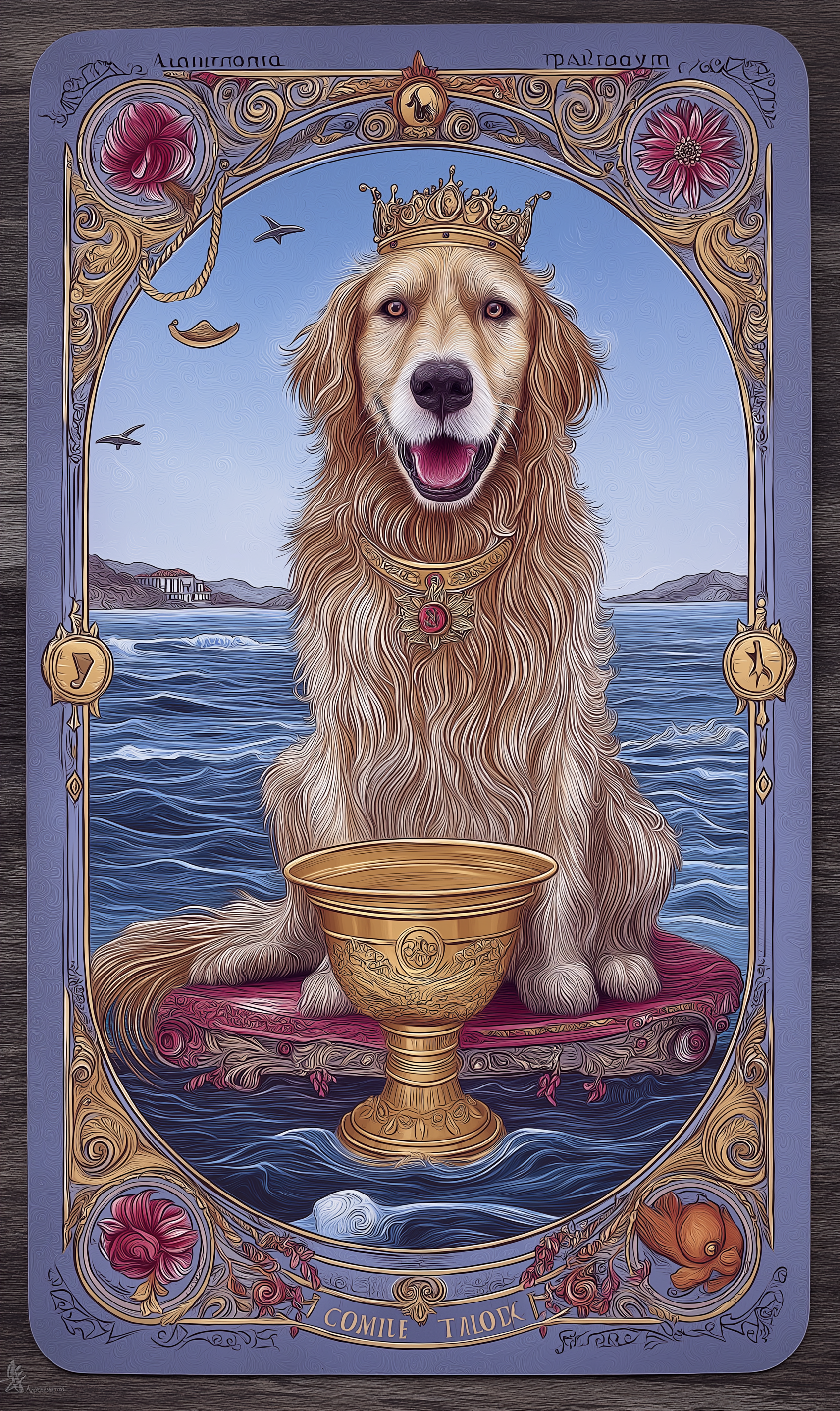 **강아지 타로카드에서 King of Cups는 “감정의 성숙과 안정된 교감”**을 상징합니다.