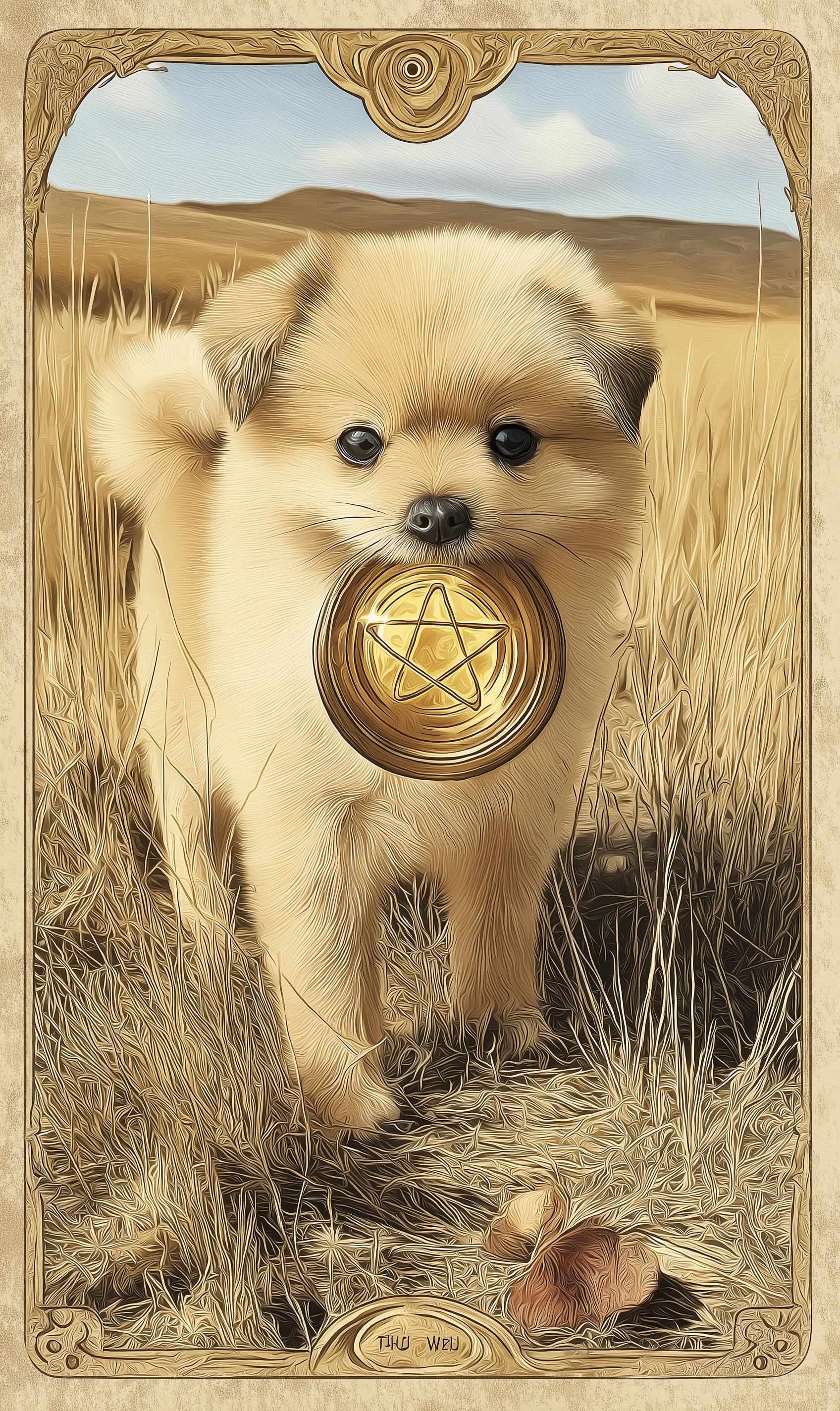 🌞 오늘의 반려견 운세 – Page of Pentacles 카드 해석