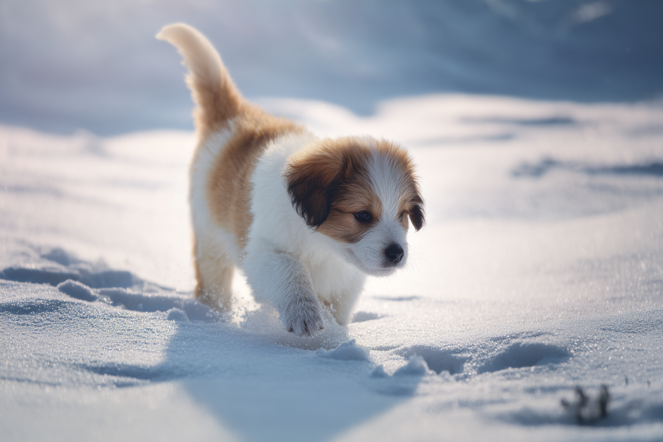 강아지가 눈 위에 첫 발을 올리는 순간, 보호자가 자주 목격하는 행동들이 있습니다: